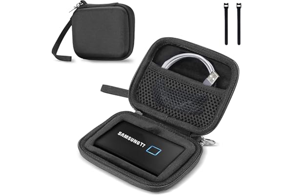 対応端末:Samsung T7 Portable SSD / T7 Touch Portable SSD 500GB 1TB 2TB SSD USB 3.2 外付け SSD。 耐水性のある硬質EVAカバーと高品質のソフトインテリアにより、こぼれ、衝撃、へこみ、傷に対する二重の保護を提供する 内部メッシュポケットは、USBケーブルやアクセサリーを収納するのに最適。 ストラップとカラビナ付きで持ち運びがとても便利;スムーズで頑丈な360度ジッパーで開閉が自由。 外寸: 12.4×9.9×3.3cm(4.9 x 3.9 x 1.3 インチ), 内寸: 8.2cm×5.2cm×1.0cm(3.2 x 2.05 x 0.39 インチ)